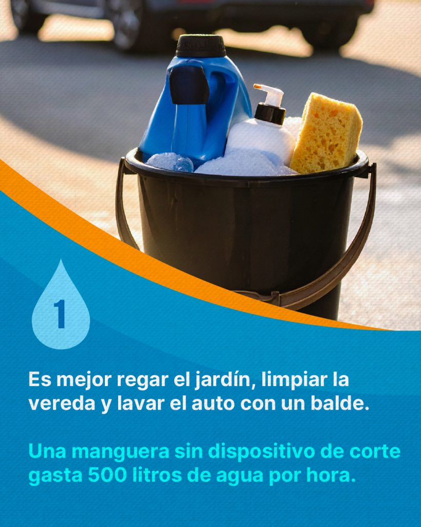 . Evitar actividades que demanden grandes cantidades de agua y que puedan postergarse: lavado de autos y veredas, riego de jardines, programas largos de lavarropas.