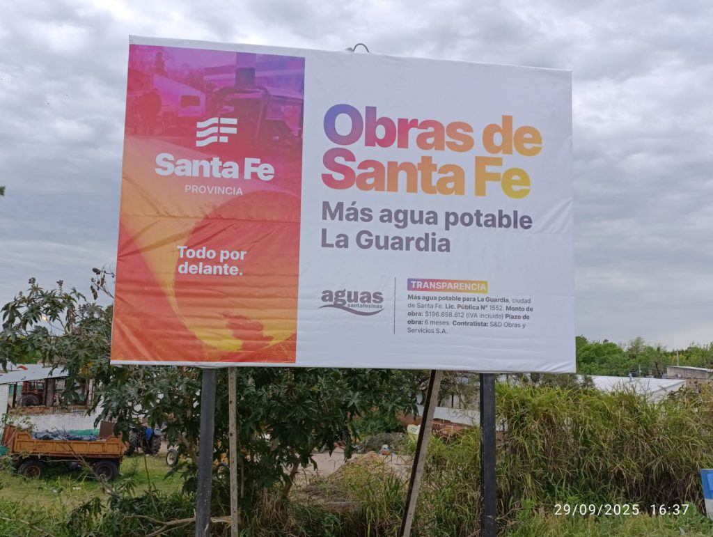 Aguas Santafesinas avanza con los trabajos correspondientes a la rehabilitación del tanque elevado existente e instalación de una nueva cisterna de almacenamiento de agua potable en el predio ubicado al ingreso del barrio de La Guardia, a la vera de la Ruta Nacional n° 168.