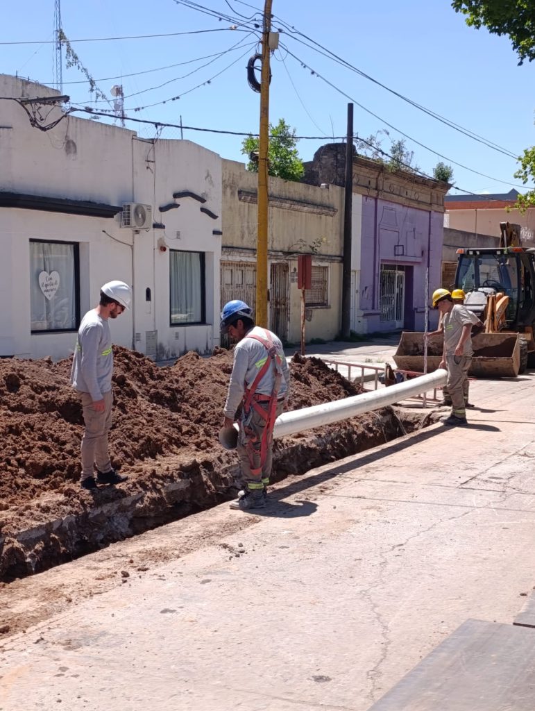 Los trabajos, que se iniciaron este semana, comprenden el tendido de 80 metros de cañerías por calzada. En el lugar se colocan cañerías de PVC de 200 milímetros de diámetro para aumentar la capacidad hidráulica de conducción de los líquidos cloacales.