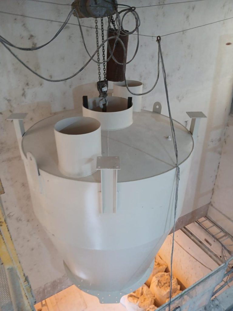 Los trabajos consistieron en la fabricación, traslado y montaje de un nuevo sistema de descarga de bolsones de cal, que incluye silo, tolva y tornillos de traslado. Además, se construyó una nueva cuba de preparación de cal con techo metálico, y se realizaron tareas de demolición y desmontaje del antiguo silo, la plataforma de descarga de bolsones y la tolva existente.