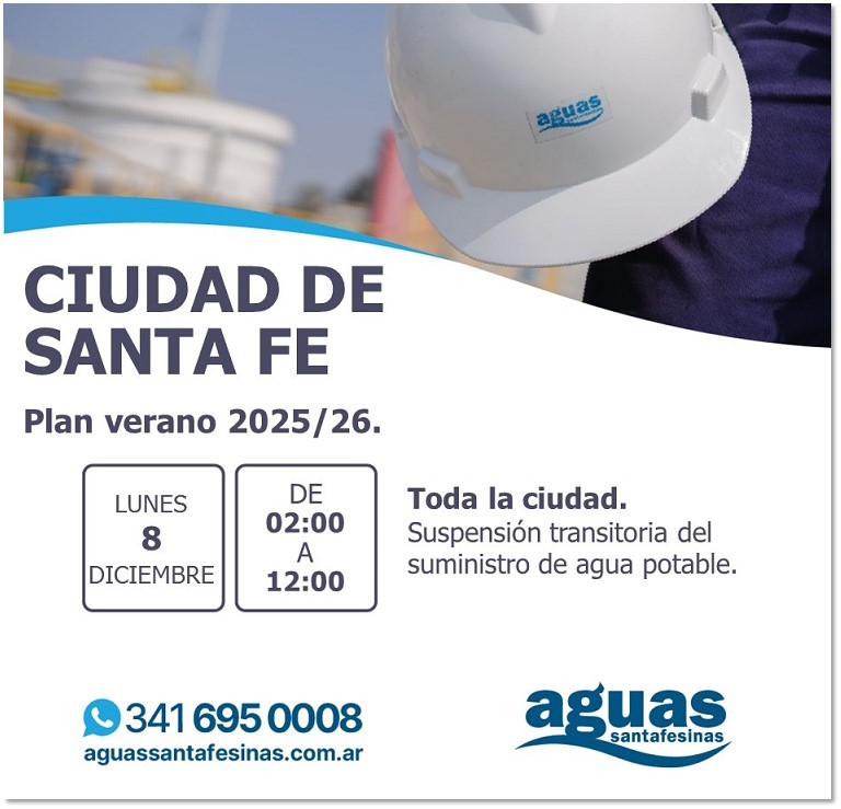 Atención al usuario: disponible las 24 horas por WhatsApp al +54 341 695 0008 o a través de la oficina virtual en el portal institucional www.aguassantafesinas.com.ar
